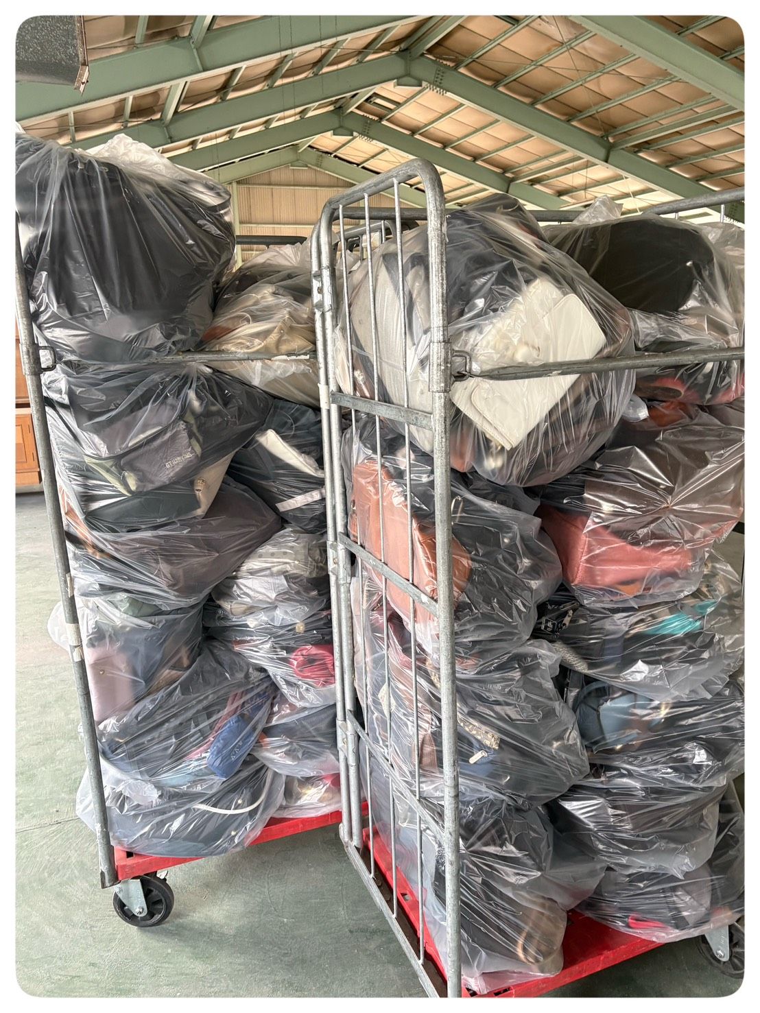 姫路市のリサイクルショップ様からかご車3台分のバックの買い取りをさせていただきました。