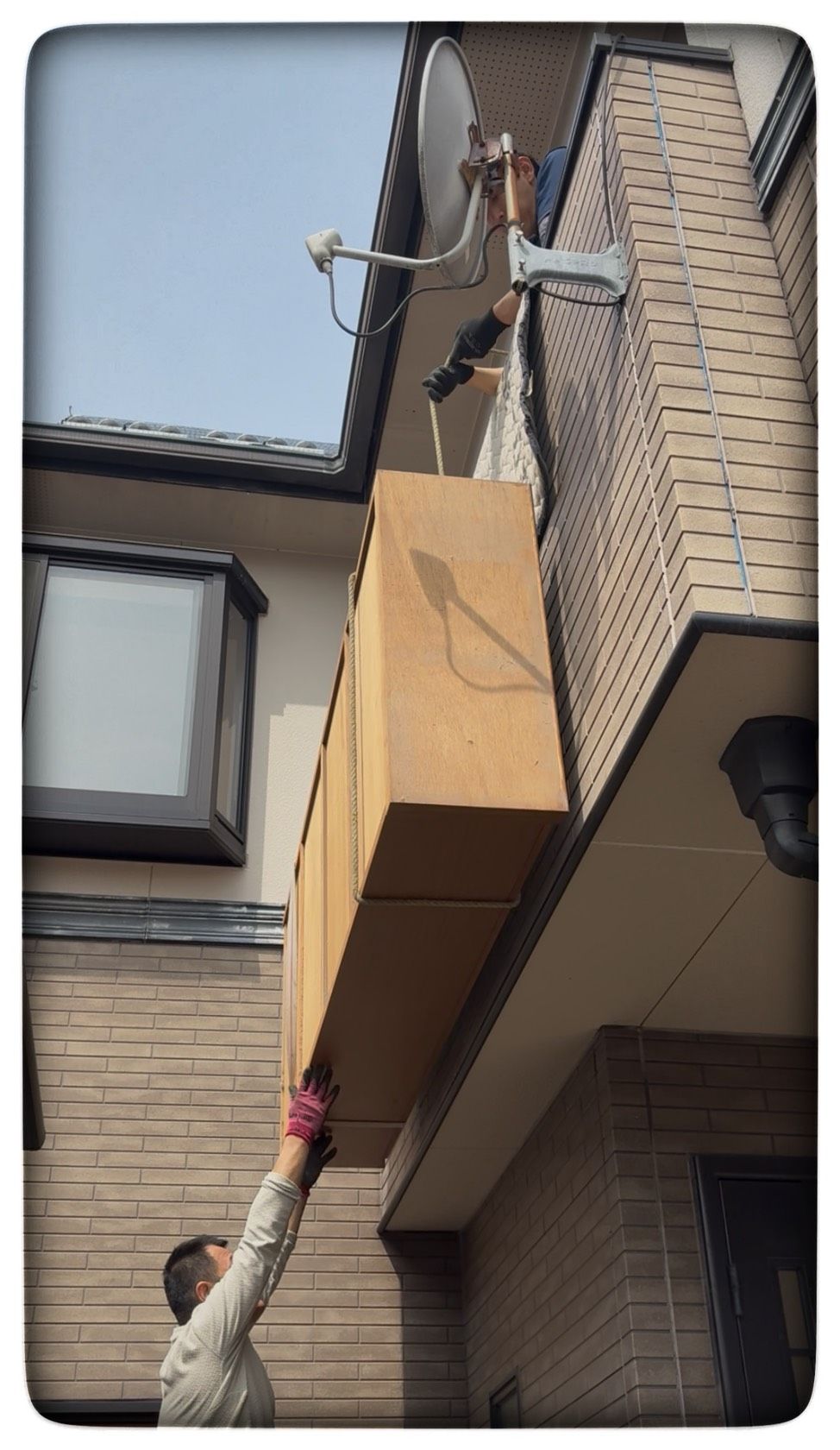 一軒家片付け 作業事例 2026.03.29 お引っ越し後の一軒家の片付けしてきました! 片付けの1コマです。 立派な家具がたくさんだったので、階段の手すりを外しても通らなかったので、吊り下ろしました☺ エアコン、洗濯機、冷蔵庫、タンス、食器棚、学習机、灯油ボイラーなどなど まるごと全部引き取りさせていただきました。 奥さまがとても喜んで頂けたことが嬉しかったです。学習机が3点。3人の息子さんたちとの思い出もよぎったかなーと思いながら作業終了です。