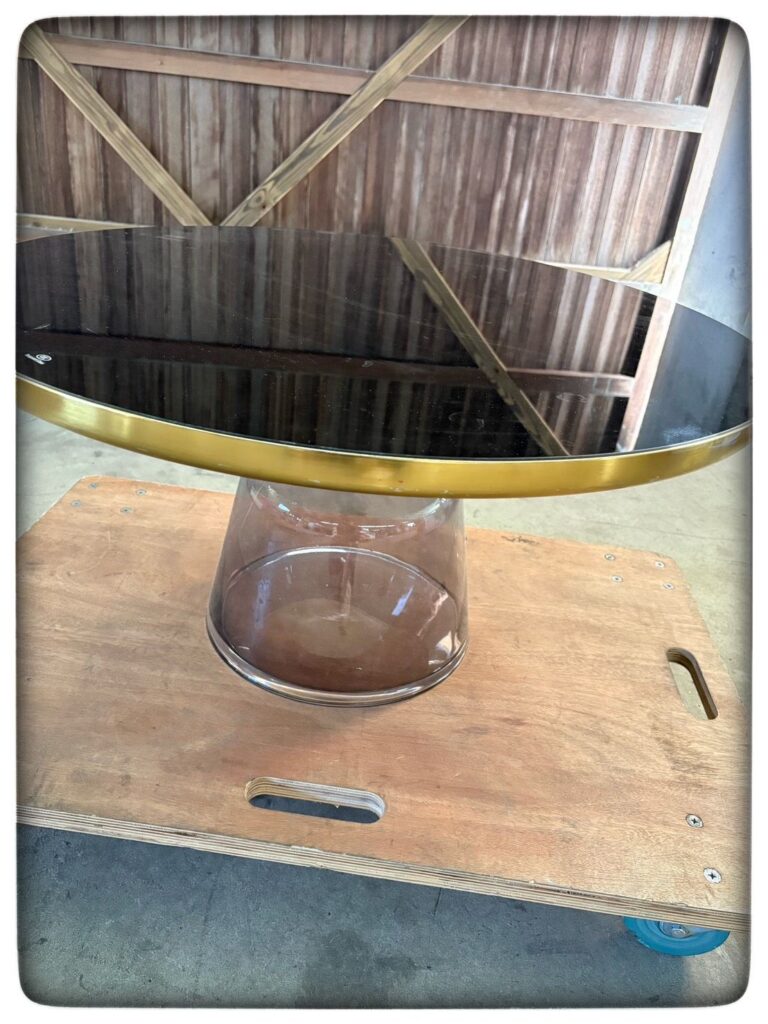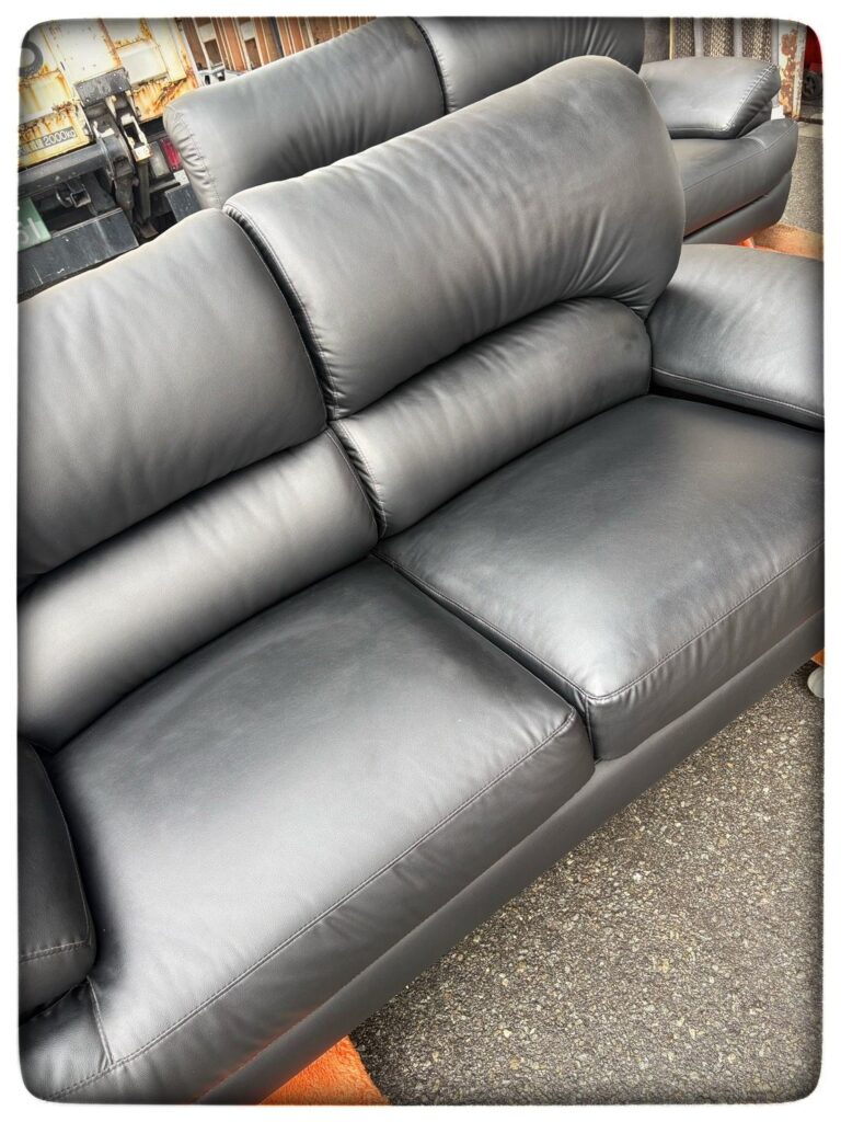 本日の買い取り商品‼ 家具 2026.04.10 今日は 黒の皮ソファー、ドイツ製のチェア、強化ガラスのおしゃれテーブルの買い取りさせていただきました‼ 朝からどしゃ降りでしたが 作業時は雨が止んでラッキーでした☺